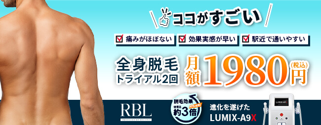 RBLでは、ヒゲ脱毛から全身脱毛、VIOまで幅広いメニューが用意されています。
